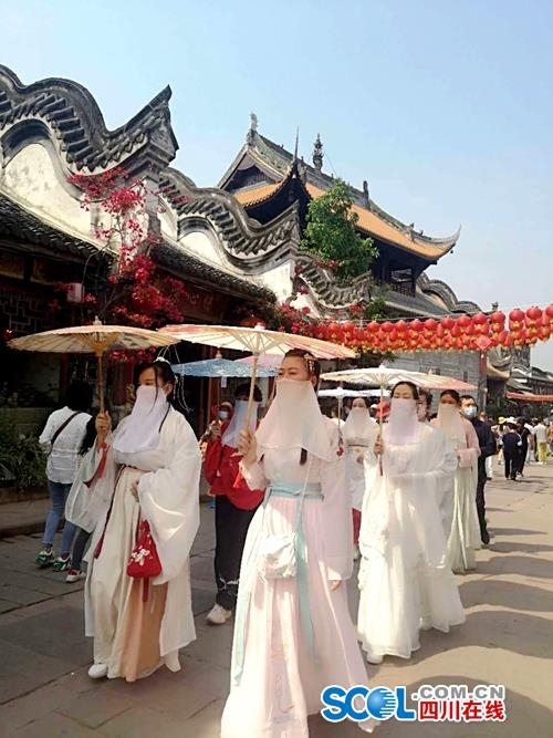 “逛古镇、爬长城、看花海,这既是今年五一小长假洛带镇为广大游客精心设计的旅游线路,又是合理分流游客不聚集的有效举措。”该负责人说,小长假期间,洛带古镇推出了客家民俗歌舞、客家龙和川剧表演、汉服走秀、户外体验营等主题活动。洛带镇以构建古镇景区大旅游板块为依托,建立了“一镇三片”(一镇为洛带古镇;三片为华侨城博客小镇片区、金龙长城片区、蔚然花海片区)联动营销、引流导流机制,加快景区一体化发展,引导游客不扎推、不聚集。小长假第一天,洛带镇接待游客达5万人次,通过“一镇三片”机制有序有效导流,古镇景区等随时保持实时10000人次的接待容量,没有发生人员扎堆和聚集现象。(龙泉驿区供图)