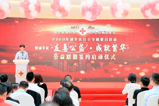 四川在线消息(记者 钟帆)2020年5月8日是第73个“世界红十字日”,为弘扬“人道、博爱、奉献”红十字精神,发挥红十字“救”在身边助力疫情防控作用,由成华区群团枢纽工程指挥部主办,成华区红十字会承办的2020年世界红十字日暨“友善公益·成就繁华”公益联盟成立活动举行。