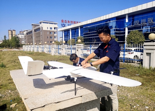 5月8日上午,在位于顺庆区潆溪街道的四川驭云航空科技有限公司厂房外,一架大型固定翼无人机经过调试后,在技术人员的操控下,快速升至200米高空,并飞向远方。现场技术人员则通过挂设在无人机底部的摄像头传回实时画面,对航线沿途地面进行全方位巡查。该无人机巡查的对象正是航线周边可能出现的疑似火点,巡查中它将记录下航线沿途的所有秸秆焚烧行为。