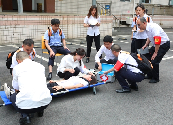因此,越真实就越有价值。市局瞄准实战效果,综合考量全市行业人员多、地域广的实际,最终确定了机关大楼、物流中心、崇州分公司三个点位和地震、火灾、食物中毒、机动车事故四种常见灾害类型,参加人员近400人,是近年来开展的种类最多、规模最大的一次综合性应急演练。