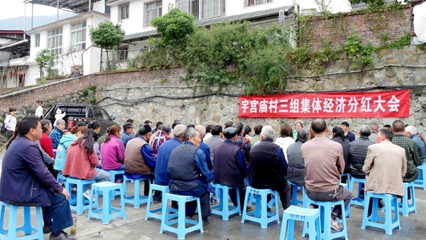 “大家坐好了,马上我们就根据名单分钱!”5月12日,汶川县漩口镇宇宫庙村村委会院坝里人头攒动,热闹非凡,一片喜气洋洋的景象。当天,宇宫庙村三组的村民将平分集体经济产生的28万元收益。