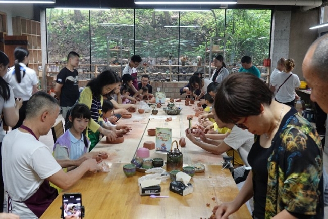 纷扰的尘世,人人都希望能慢下来过好生活,踏实地做好手里的每一件事情。现场还将与艺术近距离的触碰。现场除了有藏羌秀博物馆精品作品展以外,还有老师现场指导完成刺绣作品,让大家在羌绣技艺的表现形式、历史演变、制作过程等方面进行深入了解。还有非遗草木染扎染,非遗点翠工艺饰品制作,手工巧克力,团扇绘画制作。当然少不了我们的陶艺体验,几块泥巴、一个旋转工作台,这里是童心未泯者的最爱,是情侣的浪漫记忆。坐在小凳上,轻抚着细腻的陶泥,那种清凉滑溜的感觉,从手指一直渗入心田,让泥巴任其在我们的手中变化成一件件艺术的精品,使人获得一种纯真的满足。