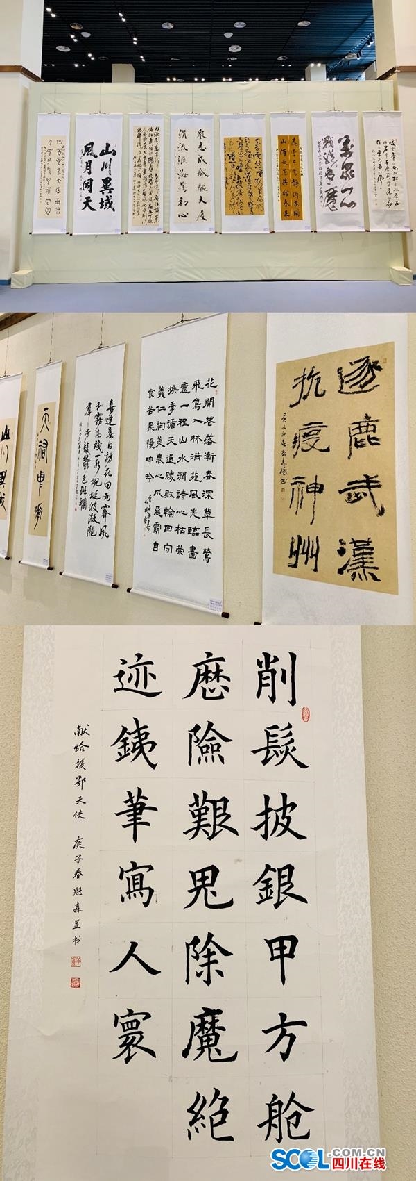 四川在线消息(张其 记者 魏冯) 5月18日,抗疫2020—泸州市抗击新冠肺炎疫情书法美术摄影作品展在泸州市文化馆开展。在泸州市文化馆内,从近2000幅作品中精心筛选出的150组摄影作品与58幅美术作品和51幅书法作品相互映衬着,给所有前去参观的市民带了一场视觉盛宴。