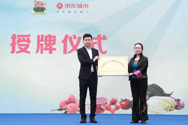 开幕式上,广汉市副市长梁筱萍为京东城市广汉运营中心授牌。据悉,为了整体打造广汉市农产品绿色、生态的形象,将其推向全川、推向全国,广汉市把含有广汉特定历史喻意的“雒禾禾”以及含有三星堆面具的卡通形象作为广汉市农产品公用品牌图案,为广汉市优质农产品形象代言。