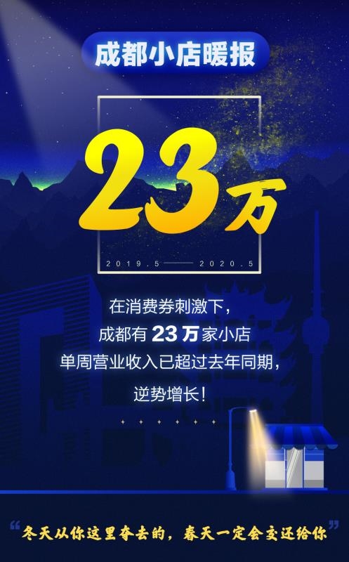 支付宝消费券相关负责人称:“收入同比增长意味着,成都23万家小店不仅从疫情影响中生意回暖,还相比平常水平有了增长,尤其是发放消费券这段时间,有一半以上小店收入还同比翻了两倍,这样的成绩给小店主带来了不少信心。”