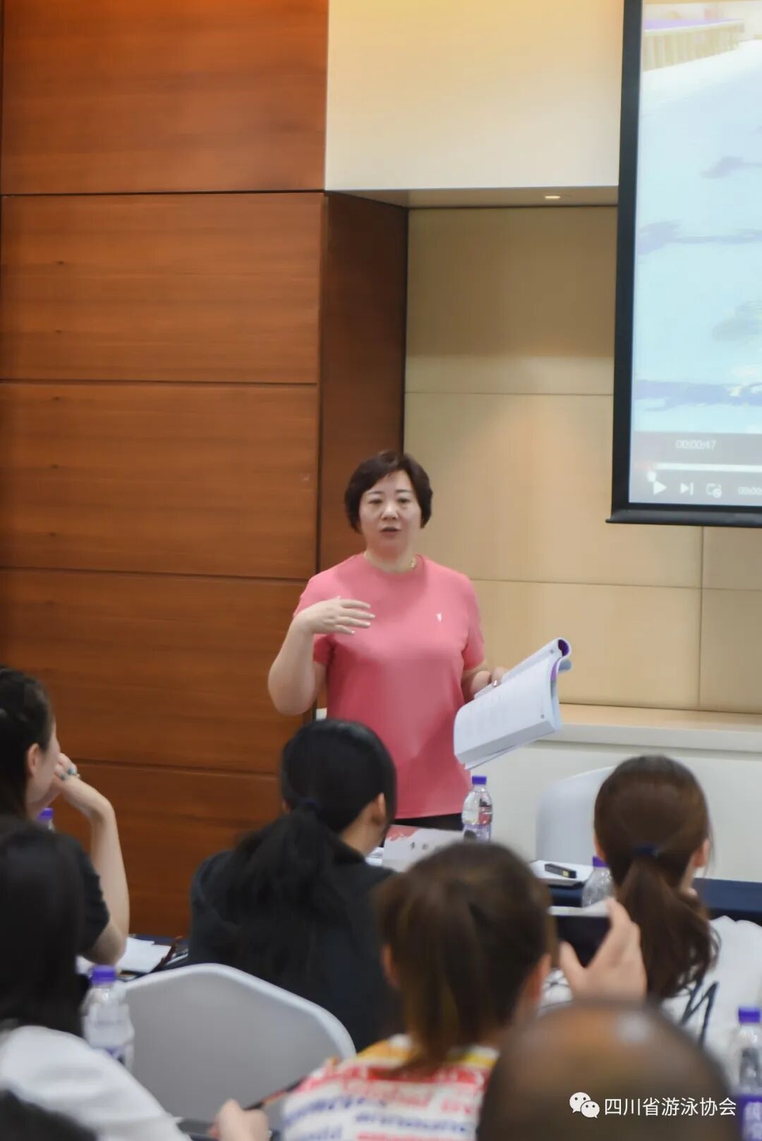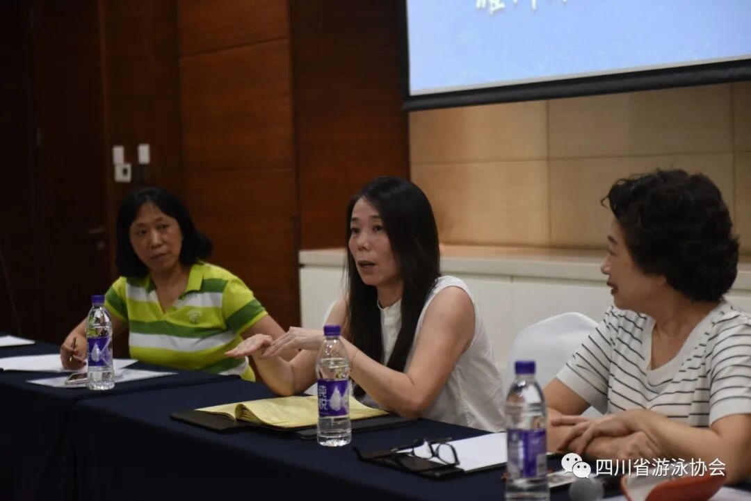 针对培训,四川省游泳协会副主席蒋文文和名誉副主席蒋婷婷表示:“裁判员和教练员队伍建设是花样游泳发展的根基,抓好裁判员队伍的业务水平,管理建设有计划、有目的地培训方向,发现和挖掘人才做好裁判员的人力储备。抓好教练员队伍建设,把握好培养、引进、用好人才这三个环节,逐步形成一支结构优良的教练员队伍,才能真正把花样游泳的基础面扩大。为此,四川省游泳协会邀请了三位国内花样游泳“大咖”级的人物朱琦(中国三位国际泳联A级裁判员之一)、胡良慧(中国资深花样游泳教练)、吴新培(中国第一批花样游泳裁判员)来为学员们授课。在裁判员培训中,朱琦进行了以“国际花样游泳规则解读”为主题的讲解,充分让参加培训的裁判员学习到最新最全的规则。朱琪表示:“培养年轻裁判员,需要做好最基础的规则解读,所有裁判员必须熟悉规则并进行实操。花样游泳一直四川省的传统优势项目,本省的裁判员更要有高尚的工作底线和职业操守。我看到了四川省游泳协会的努力,相信协会能不断增加花样游泳比赛的场次,给裁判员们更多实操的空间和机会,让他们将理论和实践结合起来。”在教练员培训课程中,胡良慧进行了以“如何高效运用时间提升花样游泳业余训练”为主题的授课。她说:“花样游泳项目的发展处于一个非常好的环境中,我希望通过我自己的经验,告诉年轻教练员如何在有限的时间内找到正确的训练方法提升运动员的能力;另一方面,年轻教练员有充沛的精力,能够为花样游泳培养更多优秀的运动员。相信通过此次培训,他们能找到提升自己的方向,为巩固提升四川省花样游泳项目作出应有的贡献。”