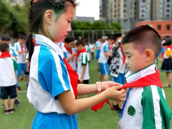 在儿童节到来之际,新都区各校举行了庄严的入队仪式,从源头培养少先队员的光荣感和组织归属感。老少先队员们亲手给新队员们系上鲜艳的红领巾,孩子们无比自豪和兴奋。此外,新都区各校还针对老队员开展以“迎接少代会,争做好队员”的队会活动。使队员们重温“什么是少代队”、“少先队的发展历程”,以及作为少先队员应尽的职责。