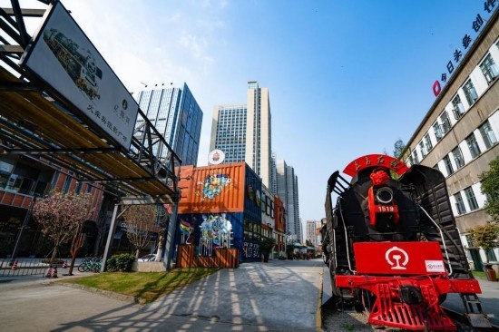 由机车公园、四季花园和艺展中心组成的中车·共享城示范区原址是曾经新中国第一座铁路工厂——铁道部成都机车车辆厂。