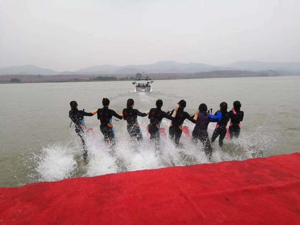 漩水湾与对岸的直线距离在300米以上,作为淮州新城境内沱江水域两岸面积最为开阔的一段,其独有的地理优势很适合开展多项水上项目。成都车道馆水上运动中心队员告诉记者,作为与成都天府花园梦里水乡水上游乐园有限公司的合作方,现在到这边来训练的大概有10余人,都取得了专业的资质。目前中心正在做策划方案,内容包括摩托艇试驾体验、冲浪、尾波滑水、快艇、水上飞人体验等营业项目,预计正式对外开放时间和“东进港”的开放时间是一致的。