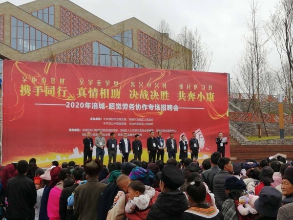 两名彝族群众同一天找到工作,源于一场劳务协作专场招聘会。绵阳市涪城区是凉山州昭觉县省内劳务协作对口帮扶地。6月9日,由绵阳市涪城区和凉山州昭觉县两地党委、政府联合主办,绵阳市涪城区援建昭觉县前线指挥部、涪城区、昭觉县两地人社部门等多家单位具体承办的一场专门针对解决昭觉县易地扶贫搬迁贫困群众就业问题的扶贫专场招聘会,在昭觉县城北乡沐恩邸社区举办。