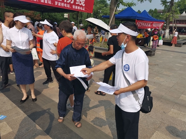 四川在线消息(记者 邵明亮 文/图)“给我一张宣传单,我也学习一下。”6月11日早上九点过,位于成都市郫都区三道堰镇的文化广场上开始热闹起来。