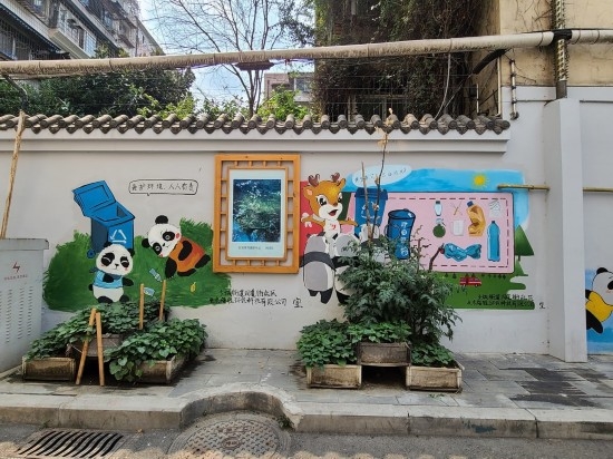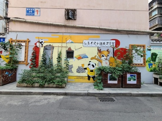 自去年8月以来,这条不为人知的小街成了垃圾分类宣传一条街,吸引了众多慕名而来的人——以小街所在的四道街社区吉祥物“暖小四”和熊猫为“双主角”,犹如一个全方位的场景课堂,墙绘、游戏、教育基地、新型垃圾房等都构成了三维立体学习的场景,令人见之喜悦,习之快速。