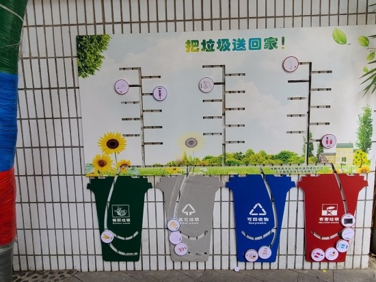 在户外街道,也有一个分类游戏墙——各种垃圾名称写在圆形、可移动的卡片上,卡片可以在槽道里滑动,下方是4类垃圾槽。“这个游戏也很吸引人,家长带着娃娃来玩得很多。”张雪莉说,街区设计思路都来自于社区和居民的创意,社区引进了一家北京的环保企业,运用“以空间换资源”的理念,社区未花费一分钱,由企业投入实现了设想。“主要是企业很认同我们街区整体氛围营造的理念,他们也希望在这里打造成功一个样本”,张雪莉将其归结为“暖小四”场景课堂效应。