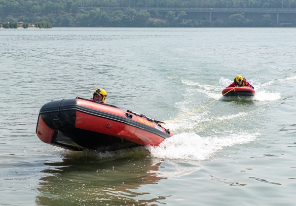 通过“引进来”与“走出去”相结合,绵阳市消防救援支队积极与IRATA、IRIA等国内专业教练团队建立定期教学、交流学习机制。通过以老带新,培养了冲锋舟驾驶员19名、潜水员8名,11人获得国家级以上资质机构培训认证。委托地方专业培训机构负责具体教学工作,邀请海事部门专家来队授课,就冲锋舟维护保养、驾机操作等科目进行现场教学,依托新龙舟码头设立实战训练场地,通过9大类277课时的实地训练和23次综合拉动演练促使队员掌握了冲锋舟架机、船机停泊、水面搜索、水面救人、离岸救助、水上抛投器操作、水域绳索救助等技术技能。