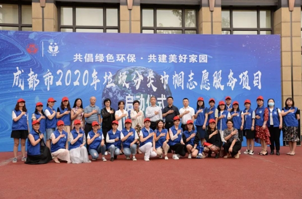 四川在线消息(记者 陈昊)近日,“共创绿色环保·共建美好家园”成都市2020年垃圾分类巾帼志愿服务项目启动仪式在新都区大丰街道太平社区举行。启动仪式上,为全市22支参与项目的巾帼志愿服务队授旗,巾帼志愿者代表宣读了《垃圾分类倡议书》,现场群众和志愿者参与了垃圾四分类有奖互动。