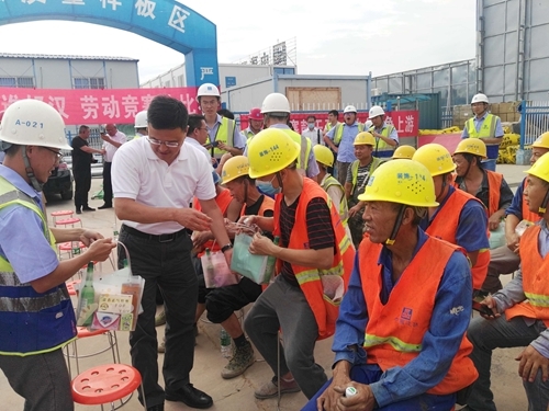 当下,成都已进入高温季节,但空管项目工地上的工友兄弟们依然顶着烈日施工在一线。省总工会、省建设建材工会、省机场集团有限公司工会、西南分公司工会和民航西南空管局建设指挥部十分关注高温条件下广大员工和一线工友的身体健康情况,为在场工友们发放清凉大礼包,送去了党和政府、工会组织的关爱。