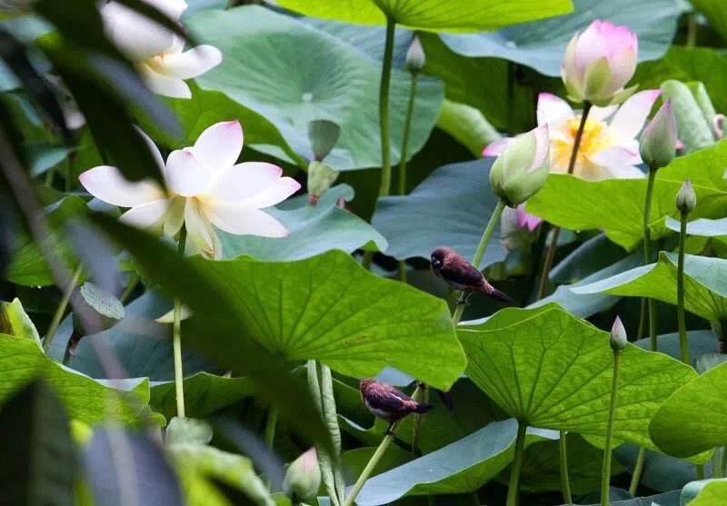 位于武侯区的分会场簇锦公园湖面面积10余亩,千姿百态的荷花竞相绽放,野鸭在湖中嬉戏玩耍,翠鸟在荷叶中穿梭鸣叫,引来大量市民游客赏荷写生。