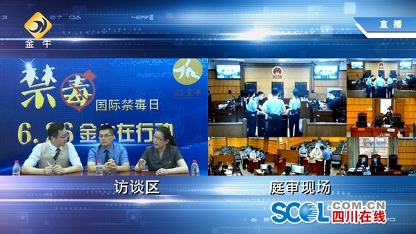 据悉,今年是金牛区开展禁毒三年攻坚行动的开端之年,此次庭审直播活动是金牛区“禁毒6·26 金牛在行动”系列宣传活动之一。本次活动由金牛区禁毒委、金牛区人民法院、金牛区人民检察院主办,中共金牛区委社治委、金牛区教育局、融媒体中心协办,首次创新采用全流程在线直播方式,提升了禁毒预防宣传教育的实效性、针对性和影响力。同时,金牛区对口援建的石渠法院、检察院也同步在线观摩来庭审,接受了远程业务指导培训。