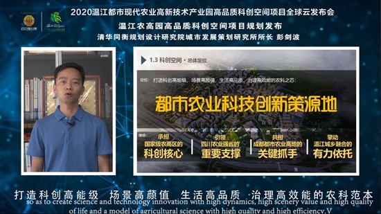 活动中,北京清华同衡规划设计研究院城市发展策划研究所所长彭剑波对外发布了温江农高园高品质科创空间项目规划,重点从规划设计、实施计划两方面深入展示了农高园泛核心区、“西部成都农科未来城”核心区及“农科之芯”高品质科创空间的空间结构、核心项目、产业特征、功能特征、形态特征、服务特征等内容。