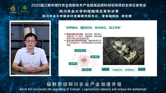 四川农业大学新农村发展研究院书记、常务副院长周伦理从项目战略目标、发展愿景、功能分布、方案设计等维度发布了四川农业大学科技园项目。