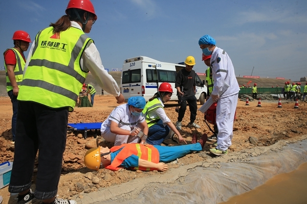 近日,成都轨道建设公司在19号线二期工程长顺村停车场工区开展以“消除事故隐患,筑牢安全防线,提升应急反应能力”为主题的防汛应急救援演练,加强汛期隐患排查力度,强化落实汛期各项措施,持续完善应急联络机制及信息报告程序,同时邀请外部单位通讯专家就如何做好施工现场通讯管线保护等方面进行培训。