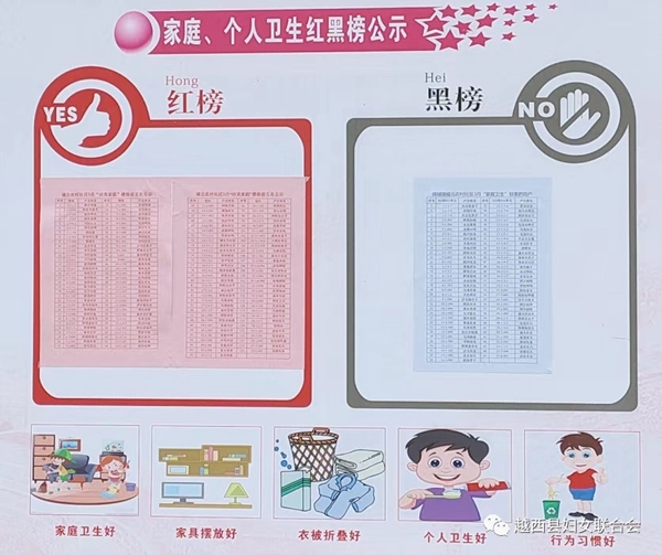 今年初,越西县妇联立足于继续在城北感恩社区推广实施“红黑榜”制度,推动“洁美家庭”创建工作向更深的层次、更广的范围、更高的水平迈进,将创建成果辐射到创建“洁美社区”,不断推进“洁美越西”创建。