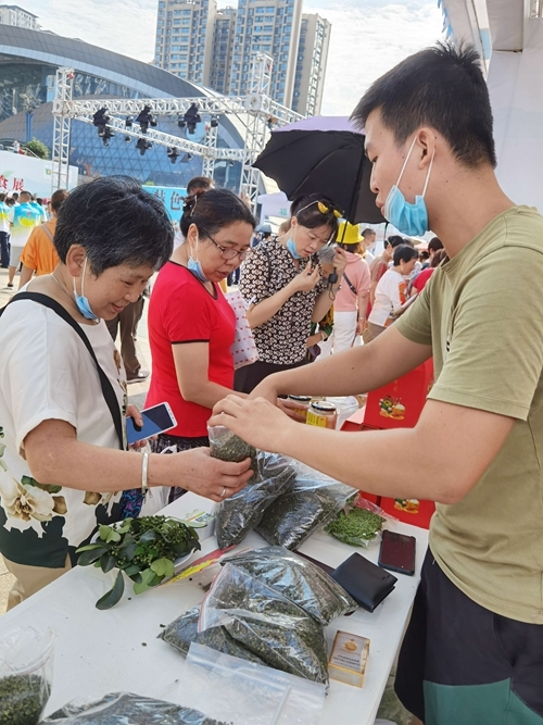 据了解,此次展会有120家单位参展,商品达300余种,布展20个乡镇(街道)展区、1个非遗展区、1个酒店专区、1个扶贫专区和1个网红直播区。值得一提的是,此次展会除了传统的现场售卖、批量订单外,还增加了第一书记、网红直播带货等,助力决战决胜脱贫攻坚。