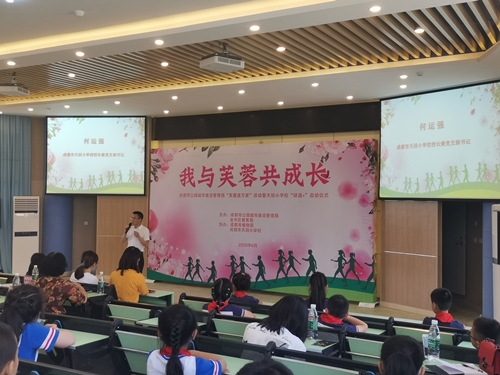 在活动中,各班学生代表上台领取芙蓉花苗,并表示将以自己的实际行动呵护芙蓉的成长,并积极号召自己身边的人也关心芙蓉、喜爱芙蓉。