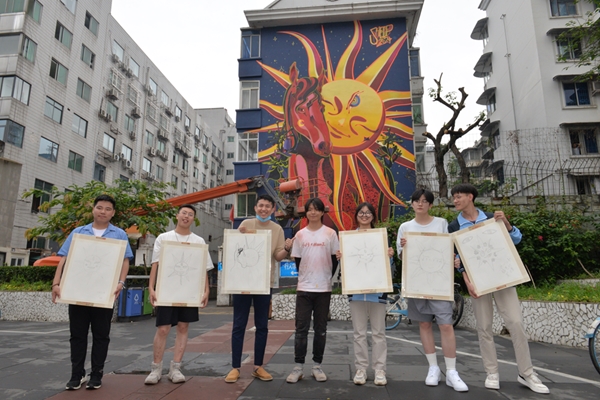 墙绘完成后,不光引得路过的市民驻足观看,还吸引了一些美术学生开展临摹活动。