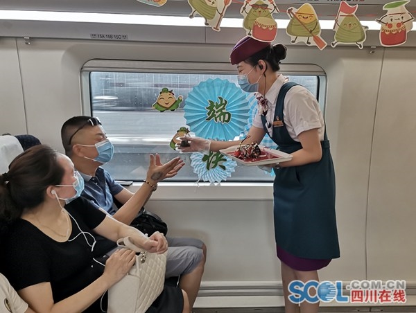 四川在线消息(李正琴 记者 郝飞 摄影报道)“五月五,过端午,粽叶青,糯米香,戴香囊……”为继承和发扬民族优秀传统文化,营造祥和的端午节日气氛,陪伴列车旅途中的人度过一个特别的端午节,6月25日,成都客运段北线动车队在成都东开往西安北的D1946次列车上,特开展“端午“粽”飘香,列车过端阳“的特别活动。