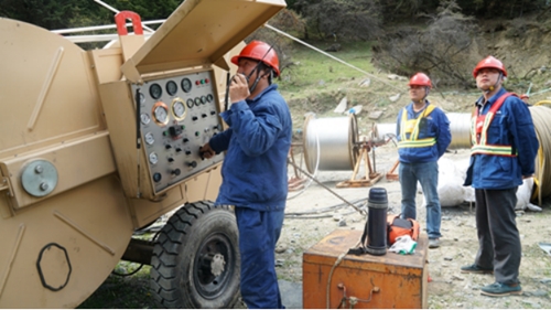 夹壁-马塘110千伏线路工程,国网成都供电公司共规划建设132个基铁塔,线路全长46.5千米,放线工程共分为10个区段,目前已进入第二、第三区段放线,由两支施工队同时进行,最终将在海拔4300米的鹧鸪山之巅会师,完成线路全路段投产。