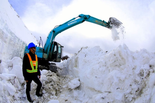 “进入4月,连降10天大雪,鹧鸪山顶的积雪越积越厚,给工程带来巨大挑战,必须整合最优的人力、物力攻克这道最难的隘口。”4月10日至17日,为抢通雪山“天险”,推进最高海拔点位的N112和N114塔位基础施工建设,身为项目总工的缪璐骏肩负重任,作为所在党支部的突击队成员和安全监护人,每天在冰天雪地中一站就是12个小时,连续七天始终坚守在海拔4300米的鹧鸪山垭口,从早到晚一刻不离,监护施工工人利用挖挖机在冰雪路上,清除厚达3-5米的冰雪路障,直到全线运输道路畅通无阻。