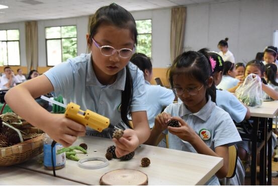 活动上,煎茶小学教师黎娅带来了交流课《松塔小艺》。一节课结束,在黎娅老师的引导下,三年级三班的孩子们充分发挥想象力,用一双巧手制作出了一件件的艺术品,有蚁后,有恐龙,有松鼠,还有带着斗笠、穿着蓑衣的老翁……让与会教师大吃一惊。黎老师说:“这些作品已经超出我的预期,孩子们的想象力真的是超乎想象。“