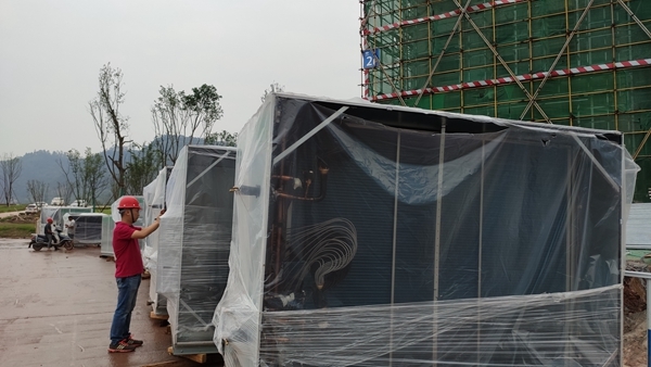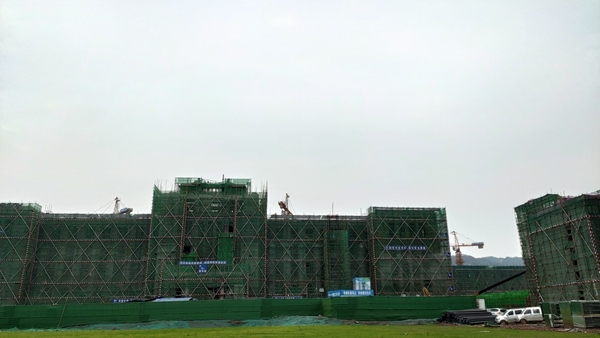 6月20日,宜宾三江新区产教融合示范区,成都理工大学宜宾校区项目现场,12栋主体结构已封顶,空调机组、墙砖、通风管道等设备正摆放在地上等待安装。“内外装饰施工工程正在紧张进行中。在8月底建成是没有问题的。”宜宾市科教集团公司总经理助理陈一鑫对工期很有信心。