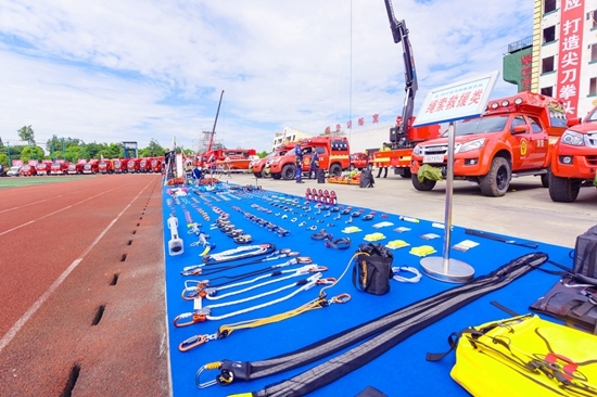 当日上午,四川省地震、化工、水域、山岳、核生化、重型机械工程以及战勤保障等7类29支消防救援专业队伍在成都市消防救援支队崇义培训基地集结。近百辆(架)救援车辆、舟艇和飞机,1万余件套消防专业救援装备依次排开,进行演示;700余名消防救援专业队队员在操场整齐列队。与会人员逐一观摩了各专业救援队伍建设汇报片和车辆器材装备,了解了专业救援队伍建设情况。