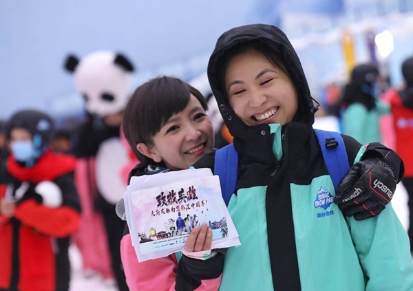 活动首站来到“首届成都夏季熊猫冰雪节”开幕式现场,厚厚的积雪,四周挂起的红灯笼,颇有“过年”的氛围,抗疫英雄们现场体验了夏日滑雪等项目。“今天滑雪真是玩嗨了!我非常喜欢成都,爱这里的山水,爱四川的美食,欣赏成都人的温润与豁达。与2008年我来参加汶川地震救护时相比,我更惊诧于成都日新月异的变化。”上海市第四人民医院门急诊总护士长戴爱兰说。