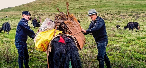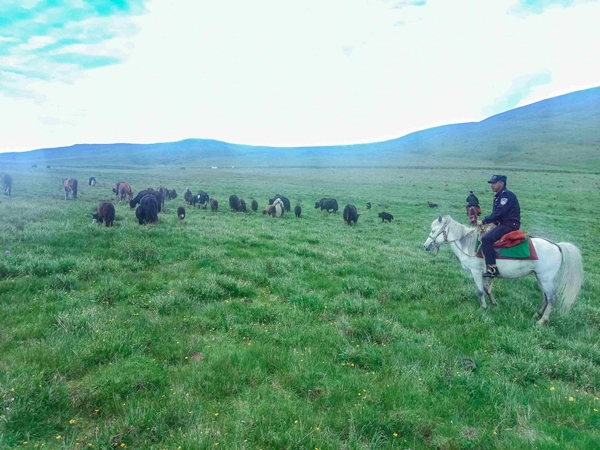 与以往不同的是,此次牦牛生命大迁徙之中,当地公安民警一路护航,确保了夏季牧场迁徙初期草场纠纷零发生。