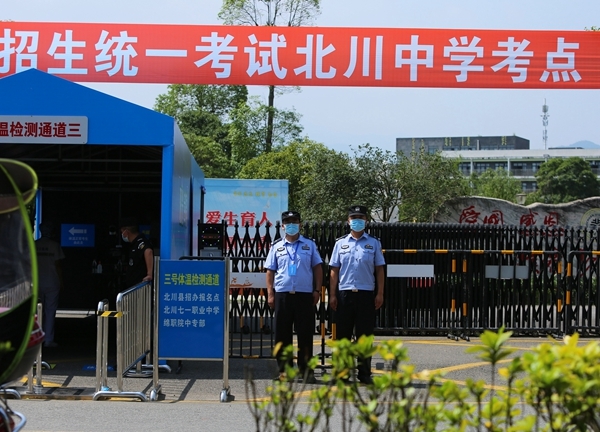 当天下午,2020年普通高校招生考试北川唯一的考点北川中学组织高考实战演练。参与安保执勤、服务的各部门人员到岗到位,提前进入高考护航模式。护送学生的家长车辆有序进入指点停车点,外校考生有序通过几个体温检测通道进入北川中学,指挥周边车辆有序分流,考点外围车辆有序改道通行。公安民警们在各条道路远端执行分流指挥、提示,在考点中心位置进行交通管制和执勤守护,“考点服务车”将身份证办理放置在校门口,购置笔、尺子、橡皮檫等考试用具袋,还有霍香正气液等都放置在孩子们触手可及的位置,以备应急之需。