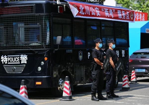 四川在线消息(李远梅 谢琼 记者 吴楚瞳 邓童童)高考前一天,7月6日,北川公安执勤民警全员到岗,全方位真实模拟演练2020年高考执勤,提前开启“高考护航”模式。