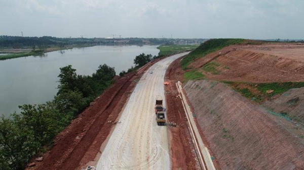 建设发展,道路先行。在通航西区基础设施项目现场,记者看到,各条交错相通道路已经搭建好路基。其中,沿江的一条道路已经开始修筑路面。叉车、拖拉机、运输车等器械在道路上运行,加速着整个片区的建设。