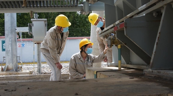 7月6日,国网遂宁供电公司援藏甘孜炉霍运维班电力工人在110千伏炉霍变电站开展高考保电特巡。
