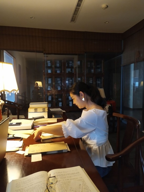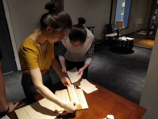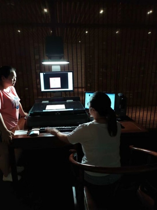 巴蜀书社编辑在往筒子页里夹纸,以免扫描时透字