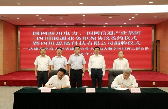签约仪式后,还举行了四川思极科技有限公司揭牌仪式。据了解,四川思极科技有限公司由国网四川电力和国网信产集团各出资50%组建,双方此前已于4月24日完成“云签约”。四川思极科技有限公司将统一对国网四川电力管辖范围内的基础资源及数据资源实施建设运营,打造新型数字基础设施服务商。