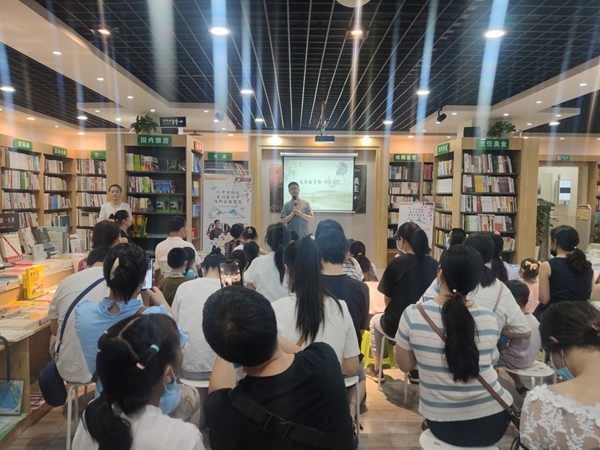 成都图书馆打造的20场公益讲座开讲了!首期开讲的是大众熟悉的知名少儿电视节目主持人陈岳。7月10日,陈岳以《从中国传统家训、家规中汲取家教智慧》为题,在成都布克购书中心(蜀汉店)和大小朋友交流传统家规家训,用诙谐幽默的语言开启了本轮公益名师巡讲的序幕。