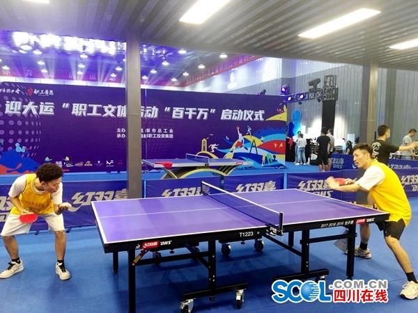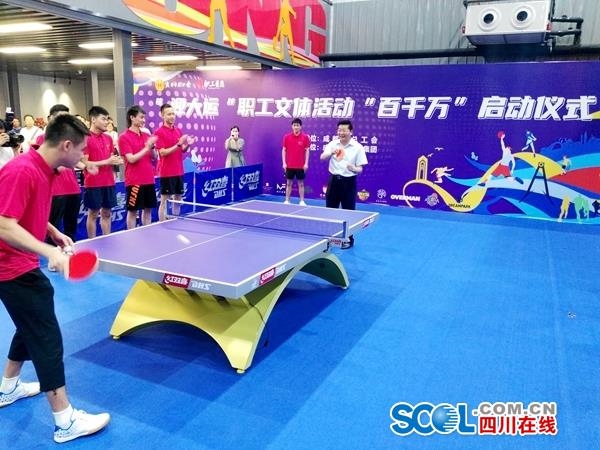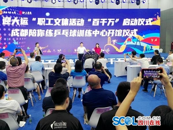 四川在线消息(记者 郝勇)7月10日下午,成都“爱成都 迎大运”职工文体活动“百千万”启动仪式,在成都蚂蚁物流有限公司职工乒乓球训练中心成功举行。成都市总工会将通过职工文体活动“百千万”,在成都市构建一套服务共享、系统流畅、运作良好的文体活动体系,为广大职工提供“家门口”的健身、足球、篮球、乒乓球、羽毛球和阅览、书画、舞蹈、音乐培训等文体服务功能的活动场馆。