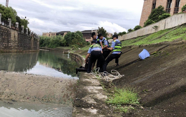 7月11日上午9时许,北川特巡警民警巡逻到永昌大道民生大楼路段,老远就看到两名妇女招手,她们告诉民警,对面有个男子钓鱼掉进了河里。民警前往查看,高墙坎下,靠对面河坎的河水中站着一名男子,河水淹至腰部以上。民警立即带上车里的救生绳索,绕路到对面河堤上的绿化带。