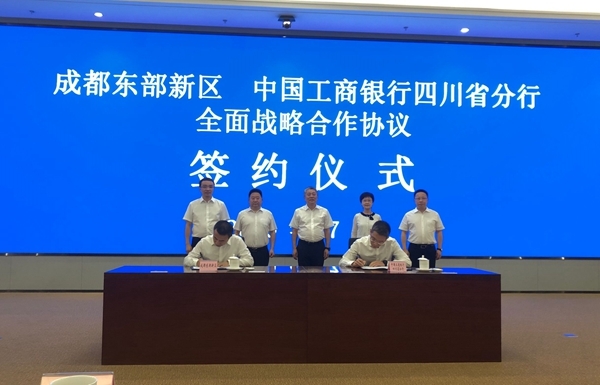 7月13日,成都东部新区与中国工商银行四川省分行签署全面战略合作协议,达成5年内为支持东部新区经济社会发展建设提供不低于3000亿元人民币的意向融资安排。