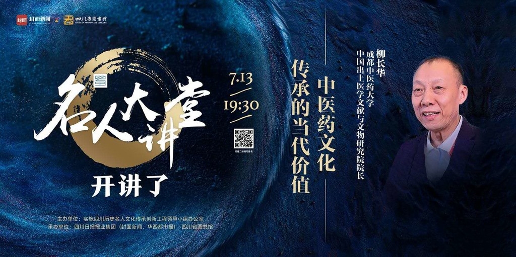 继“古蜀文化月”、“三国文化月”的主题讲座后,本月名人大讲堂迎来“中医药文化月”。中医应该如何传承?传承中医药的价值如何?应该如何打造以及保护中医药这个重要IP? 7月13日晚19:30,成都中医药大学中国出土医学文献与文物研究院院长柳长华将做客“名人大讲堂”,在省图书馆为大家带来一场关于中医药文化的讲座。不能前往现场的朋友可以围观封面新闻APP,通过同步直播围观本场讲座的精华。