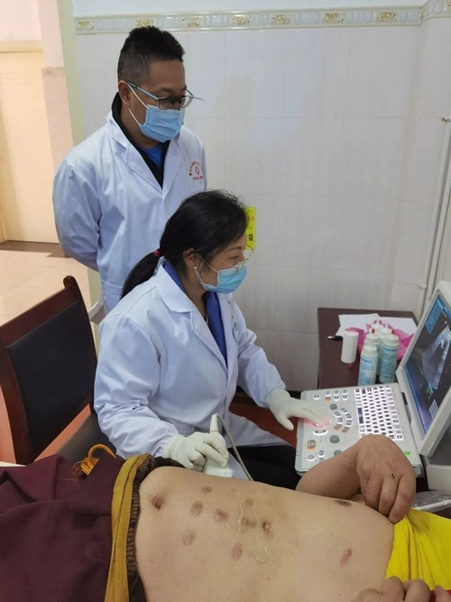 成都市第二人民医院超声科援藏医师朱昱霏6月底初上高原,她在克服高原反应的同时,主动要求参加包虫病的筛查,通过彩超检查,建立健全包虫病患者个人档案,并探索建立包虫病患者网络化管理工作。在听说牧区乡民因为身体不适、不能行动时,她主动要求与工作组一起走村入户,到当地居民家中进行彩超检查。