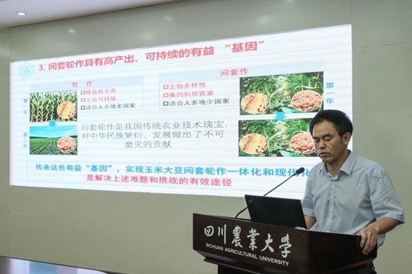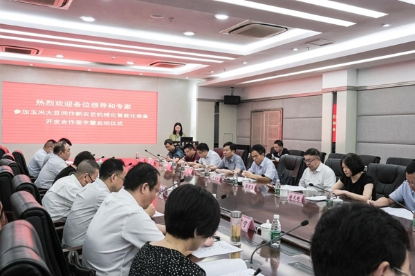 7月13日,玉米大豆间作新农艺机械化智能化装备开发合作项目签字暨启动仪式在四川农大成都校区举行。中国工程院院士、四川农业大学荣廷昭教授,中国工程院院士、石河子大学陈学庚教授,玉米大豆间作新农艺—玉米大豆带状复合种植技术首席专家、四川农大原副校长杨文钰等出席签字仪式。